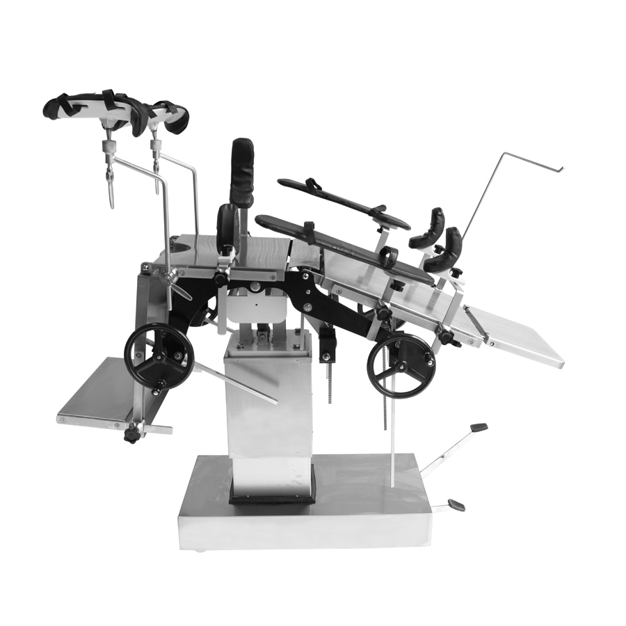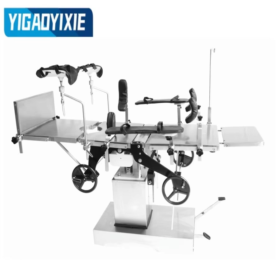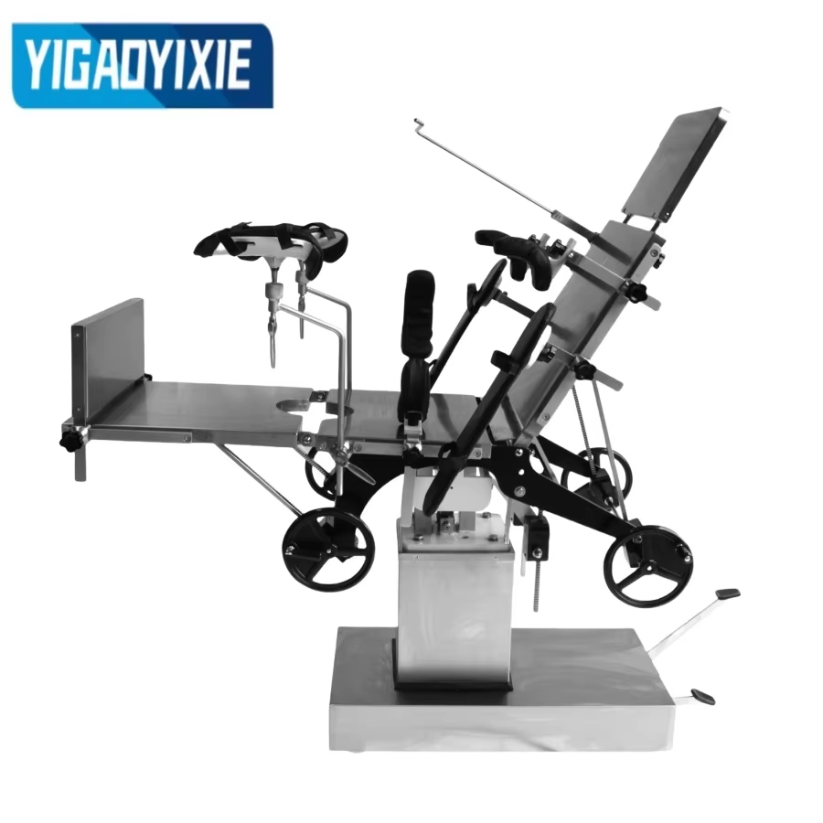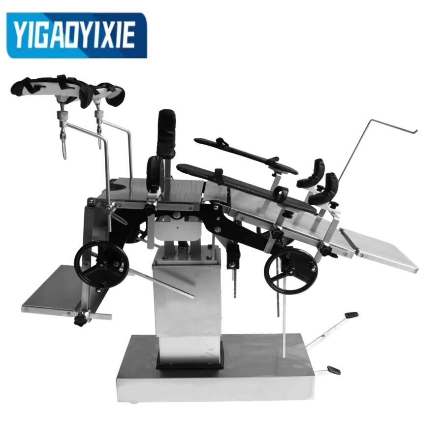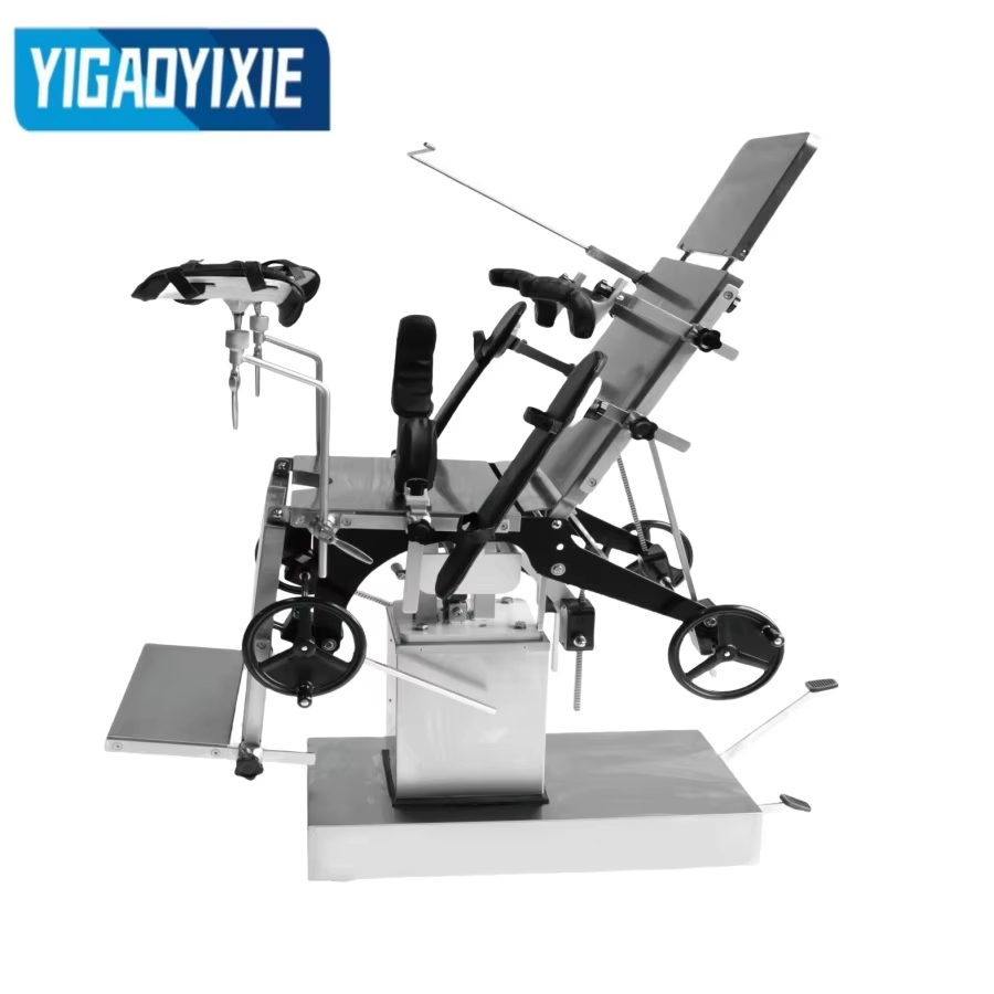 YGS3001 ステンレス鋼製油圧手術台は、手術中の患者をサポートするために設計された高性能医療機器で、さまざまな外科手術に広く使用されています。手術台は、ヘッドボード、バックボード、ランバーボード、ヒップボード、一体型レッグボードで構成されており、さまざまな手術体位のニーズに合わせて柔軟に調整できます。油圧昇降システムはフットペダルを介して油圧オイルポンプを駆動します。操作が簡単で、安定性があり、騒音もなく、ベッドの高さの頻繁な調整が必要な作業に適しています。背板と脚板の上下折りたたみ、前後傾き、左右傾きは、手回しギア、ウォームギア、ラックシステムにより正確に制御できます。ヘッドボードはスパイラルロックで設計されており、ランバーボードはハンドクランクで調整され、安定性と安全性を確保します。手術台のトップは、耐久性があり、掃除が簡単なスプレーコーティングされた炭素鋼で作られています。ベースとコラムシェルは耐食性と抗酸化性に優れたステンレス鋼で作られており、長期使用における装置の安定性と外観を保証します。